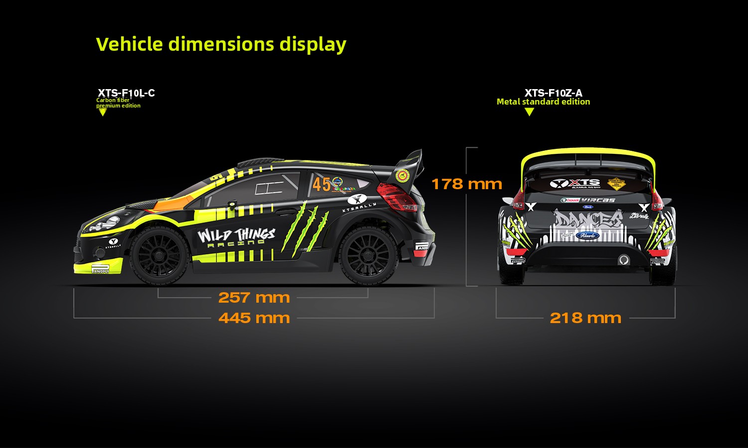 | Dimensions | Wheelbase: 257mm | L: 445mm | W: 218mm | H: 178mm |