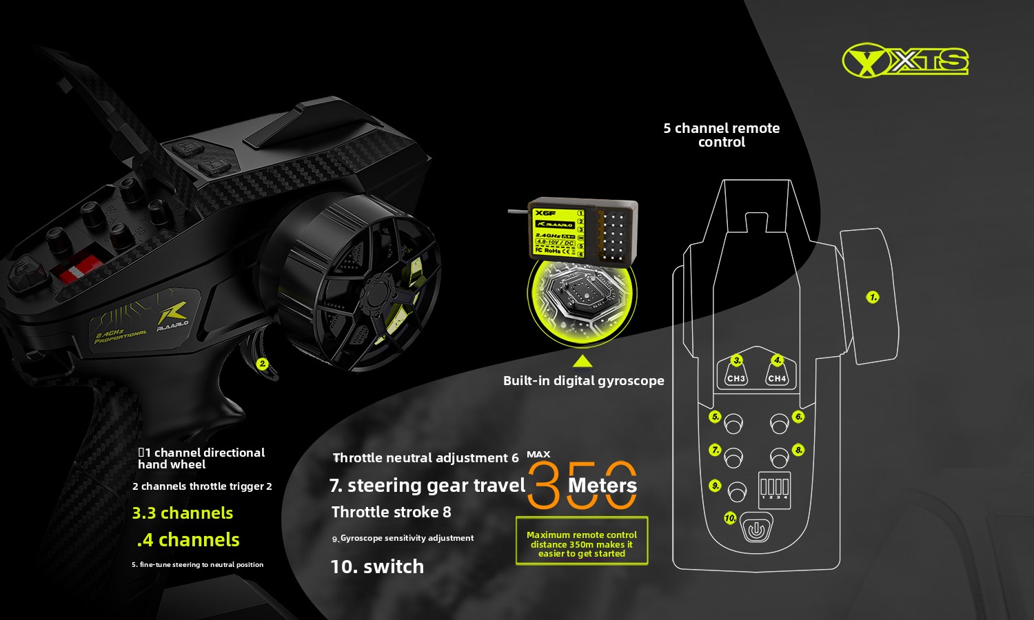 | Radio System | 2.4GHz 5-Channel (Range: ~350m) | |||