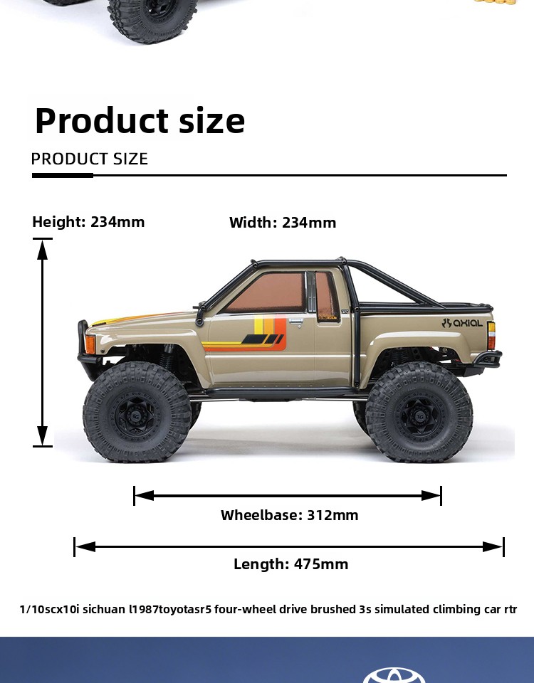 Axial SCX10 III Early 1987 Toyota SR5 1/10 4WD Rock Crawler Brushed RTR with Clipless Body 📝 Product Overview Experience the perfect blend of legendary off-road heritage and modern RC engineering....