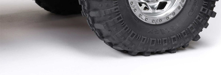 Scale Wheel & Tire Package: Equipped with licensed Interco Super Swamper tires mounted on Trail-Gear Creeper Lock beadlock wheels.