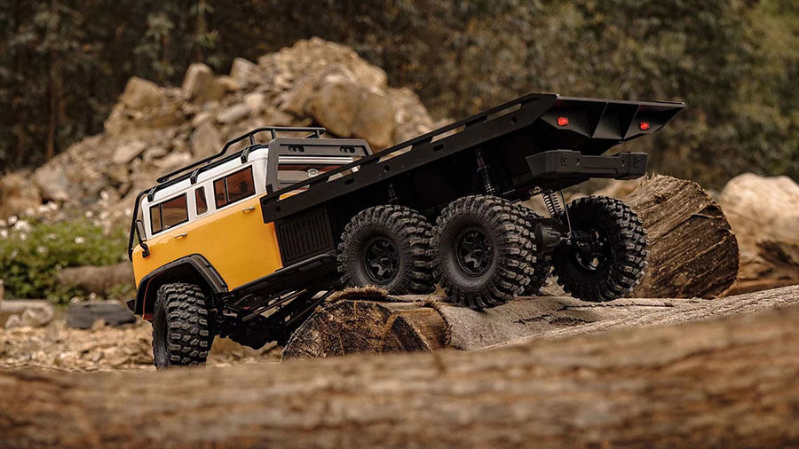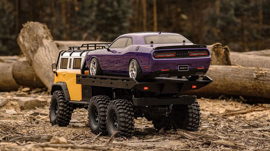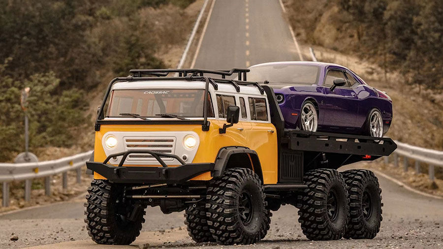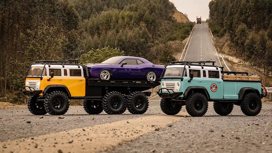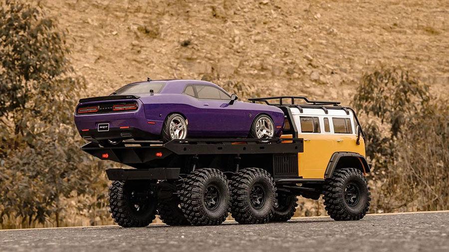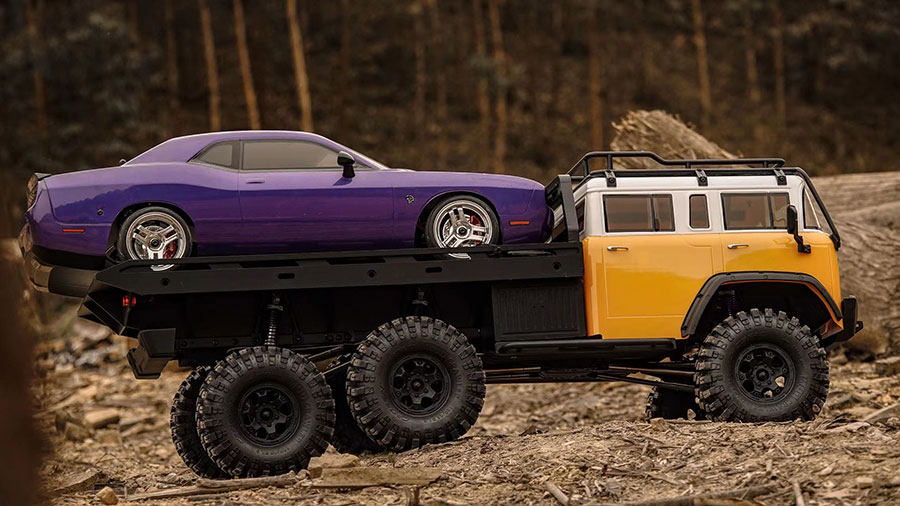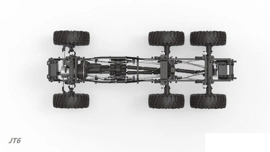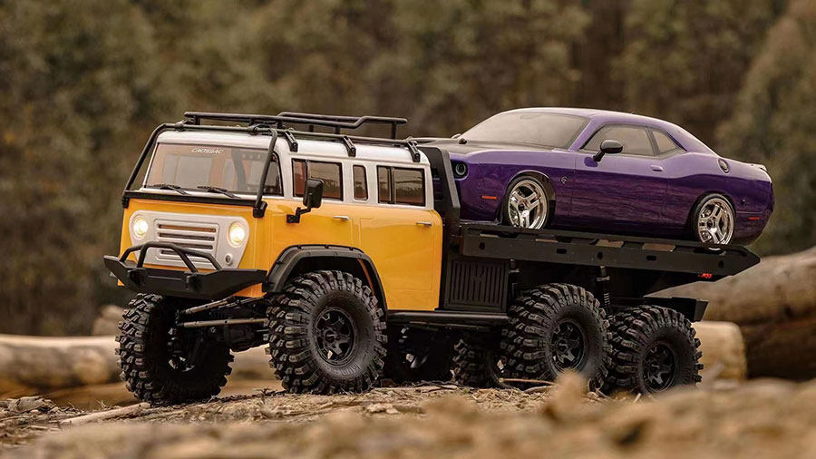 Conquer any terrain and begin a new chapter in 6x6 RC recovery. The JT6 is the sixth groundbreaking model in CROSSRC's acclaimed EMO ultra-low center of gravity chassis series. As a 1/10 scale 6x6 model that combines extreme crawling performance with the utility of a flatbed hauler, it not only carries powerful off-road DNA, but can also easily handle the transport and recovery tasks of various 1/10 scale vehicles.