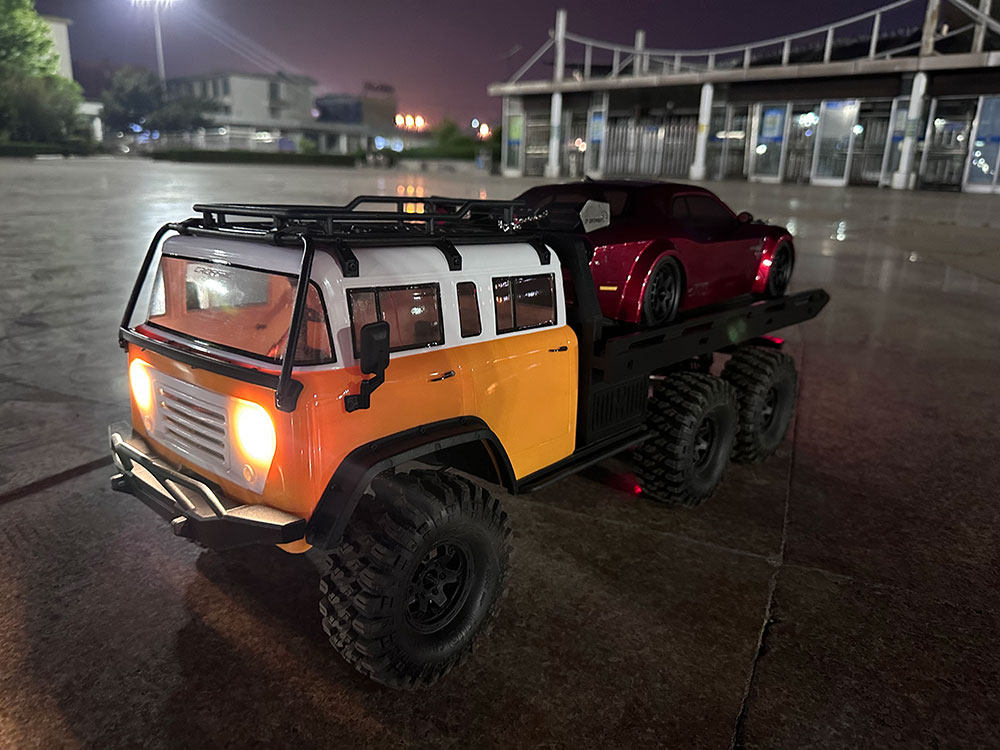 Model JT6 1/10 Professional 6x6 RC Flatbed Tow Truck - Heavy Duty Off-Road Recovery & Rescue Vehicle Conquer any terrain and begin a new chapter in 6x6 RC recovery. The JT6...