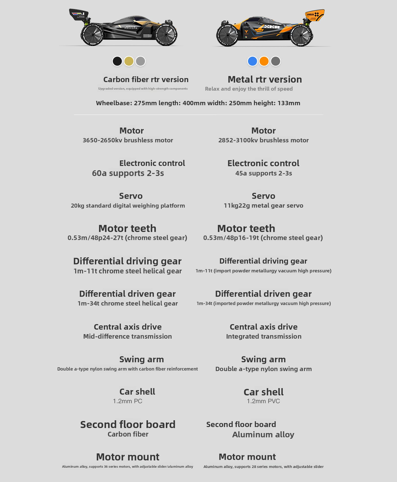 Car Dimensions: 400 × 250 × 133 mm