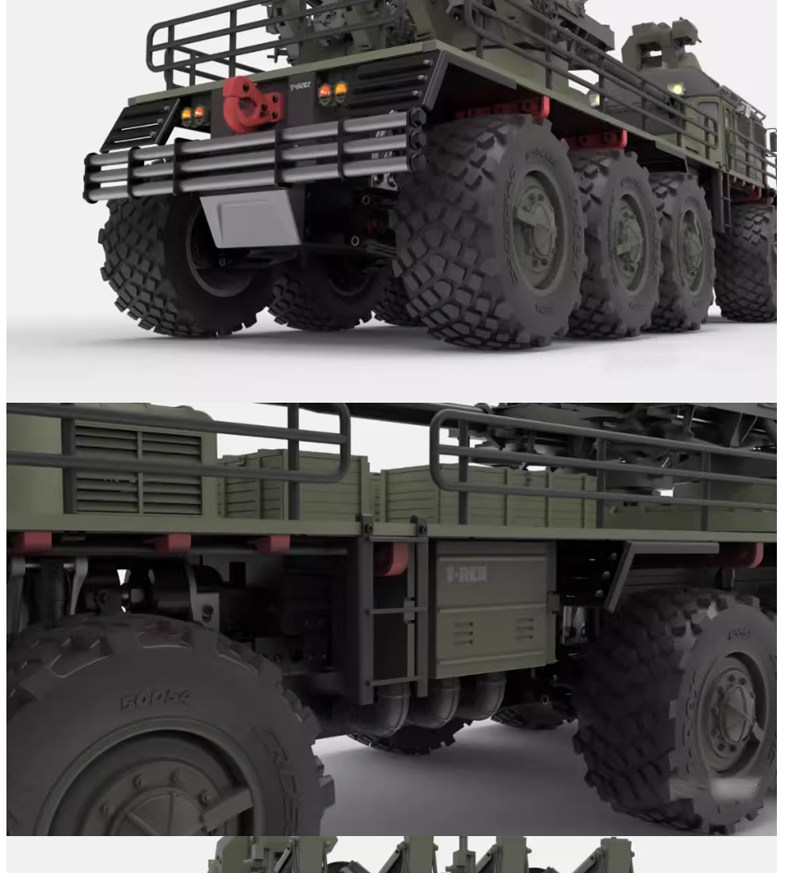 The XX10 T-REX represents the pinnacle of heavy-duty RC military engineering. Measuring an incredible 1.26 meters (approx. 50 inches) in length, this 10x10 beast is designed for experienced hobbyists who demand the ultimate in scale realism and off-road performance.